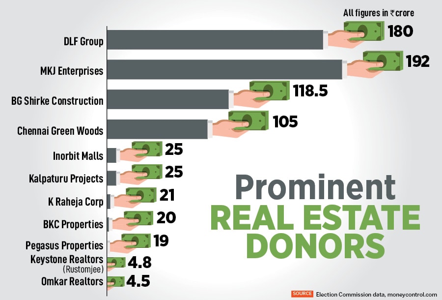 The Rs631 crore donated by well-known developers DLF, K Raheja Corp, Prestige, Omkar and Keystone (Rustomjee), among others, pales in comparison to the nearly Rs1,232 crore donated by the top donor Megha Engineering. Industry watchers point to the fact that while these businesses need help to get going, the nature of their interactions with the authorities is different.