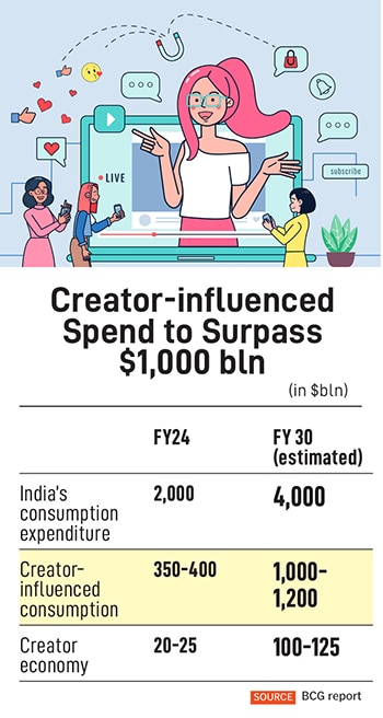 According to a May report by the Boston Consulting Group (BCG), titled From Content to Commerce: Mapping India’s Creator Economy, there are close to 2.5 million creators in India, influencing more than 30 percent of consumers, leading to $350-400 billion in consumer spend. It further states that creator-influenced spending is set to reach more than $1 trillion by 2030, unlocking upwards of $100 billion in revenues.