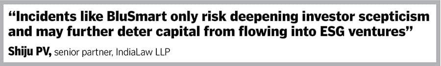 However, Shiju PV, senior partner, IndiaLaw LLP, calls the issue in BluSmart ‘not unique to ESG investments’—it is a case of age-old corporate fraud and fund diversion, a recurring issue in India.