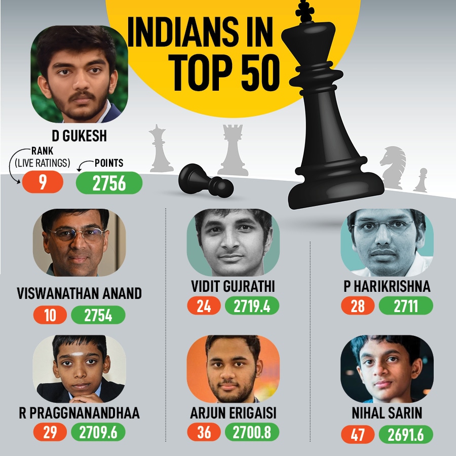 Harikrishna is also among the seven Indians, along with Anand and Gukesh, to feature in the top 50 of FIDE’s live rankings.