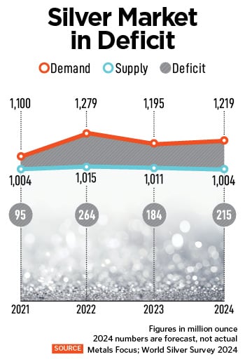 The worldwide market for silver has seen a supply shortfall for three years in a row leading to a rapid rise in prices