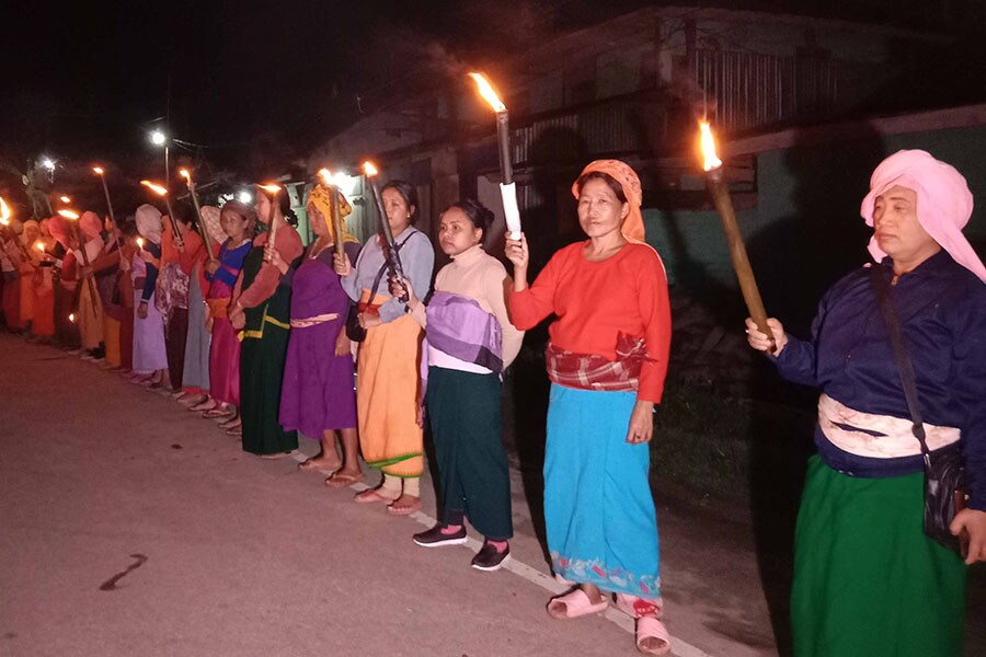 Women form human chain protest demanding peace n India"s north-eastern Manipur state on June 17, 2023 Image: Anuwar Hazarika/NurPhoto via Getty Images