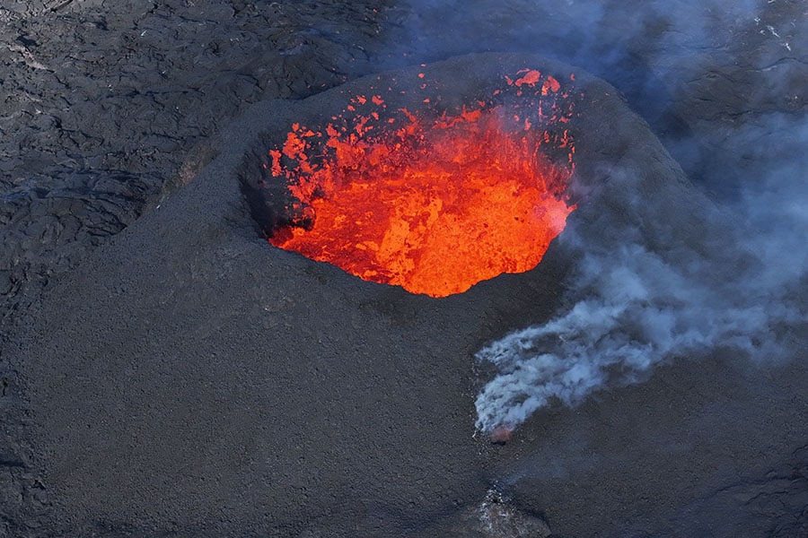 A picture taken with a drone on April 13, 2024, shows an aerial view of a volcanic eruption, ongoing for a month, at Sundhnukagigar in southwest Iceland. Iceland has 33 active volcanic systems, higher than any other European country