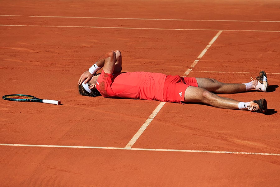 Greece"s Stefanos Tsitsipas celebrates after winning the Monte Carlo ATP Masters Series Tournament final tennis match against Norway"s Casper Ruud at the Monte Carlo Country Club on April 14, 2024. Stefanos became the first 25-year-old player to win $30 million prize money in his career, a rare achievement in tennis.