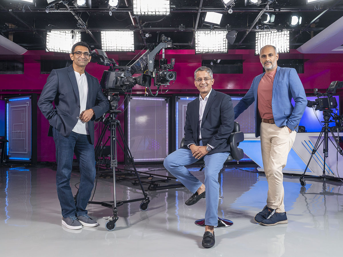 (From left)Kiran Mani, CEO - Digital Kevin Vaz, CEO - Entertainment Sanjog Gupta, CEO - Sports, JioStar. Photographed at JioStar office, Prabhadevi, Mumbai. Image: Bajirao Pawar for Forbes India
