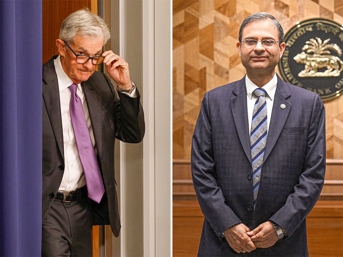 Federal Reserve Bank Chair Jerome Powell (left) and Reserve Bank of India governor Sanjay Malhotra. Images: Chip Somodevilla/Getty Images INDRANIL MUKHERJEE / AFP