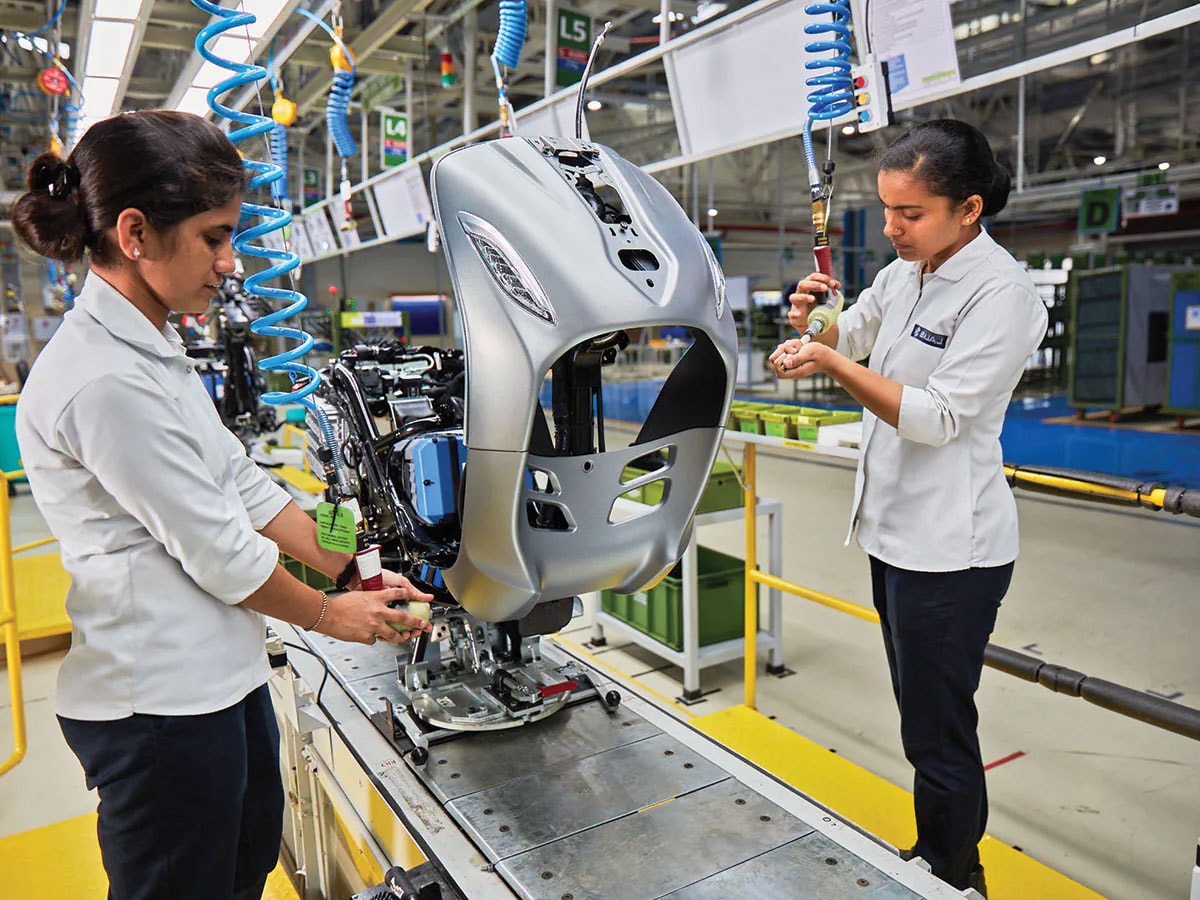 Bajaj’s EV manufacturing plant in Akurdi, Pune. So far in 2025, Bajaj has sold 54,348 electric two-wheelers Image: Courtesy Bajaj Auto