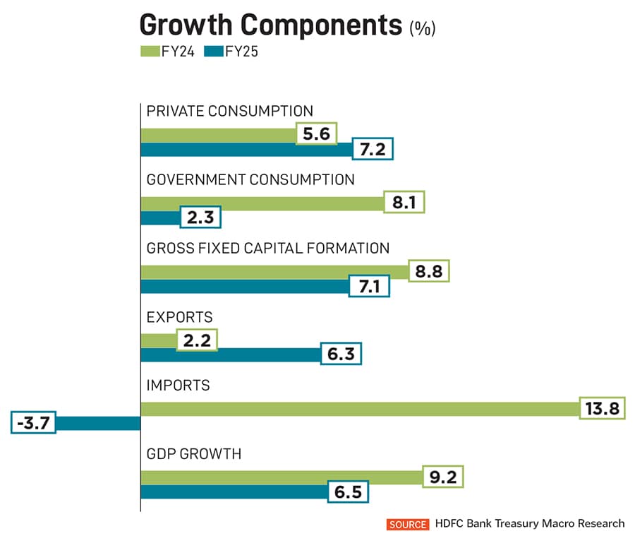 The Q4 GDP numbers would also be devoid of the uncertainty in global trade caused by the imposition of tariffs by the US on April 2. There could have been some instances of exports shipping in advance of the April tariff imposition resulting in export numbers rising in Q4.
