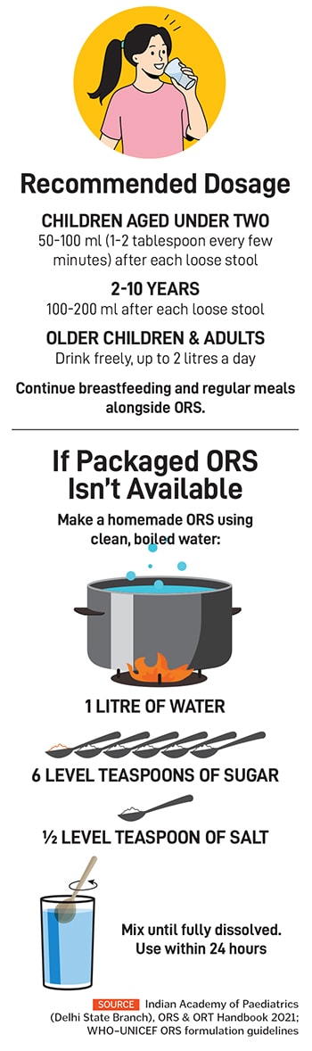 ORS is a drug that is used globally, and recommended by WHO and Unicef, to treat dehydration that arises from various diseases such as diarrhoea, vomiting, and other infections (see box). It is made of a specific formula, recommended by WHO, and cannot be substituted with any other formula. Unlike beverages such as soft drinks and fruit juices that are certified by FSSAI, which checks and certifies food products for safety standards, ORS products need to be certified by CDSCO for formulations and therapeutic standards.