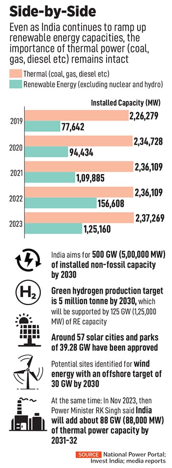 Coal remains significant in power generation, and will remain so, but its contribution to India’s total installed capacity fell below 50 percent for the first time last fiscal, with renewable energy (RE) accounting for 71 percent of India’s power generation capacity addition in FY24.