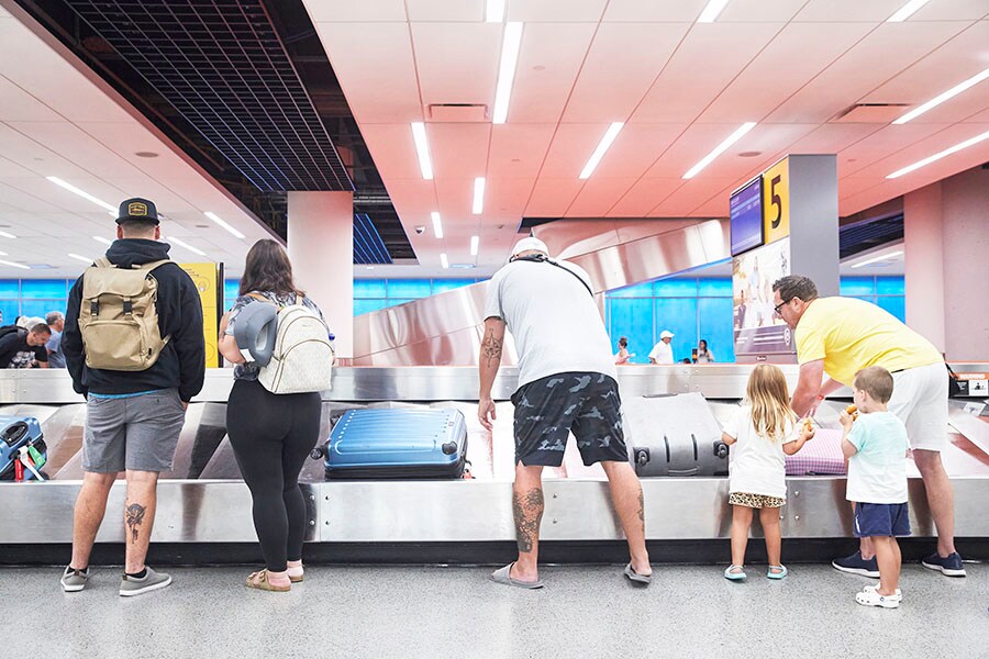 Flyers reclaim their baggage at John F. Kennedy International airport in New York, July 29, 2022. Many higher income households have been able to keep spending even as costs climb, but data and anecdotes suggest that lower-income households, despite the resilient job market, are struggling more profoundly with inflation. (Gus Powell/The New York Times)