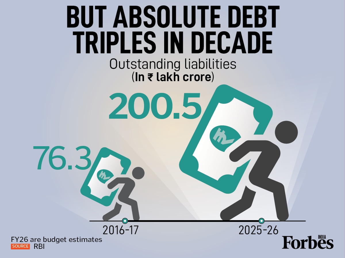 However, there is a surge in absolute terms—over the last decade, India’s outstanding liabilities have nearly tripled from Rs 76.3 lakh crore in FY17.