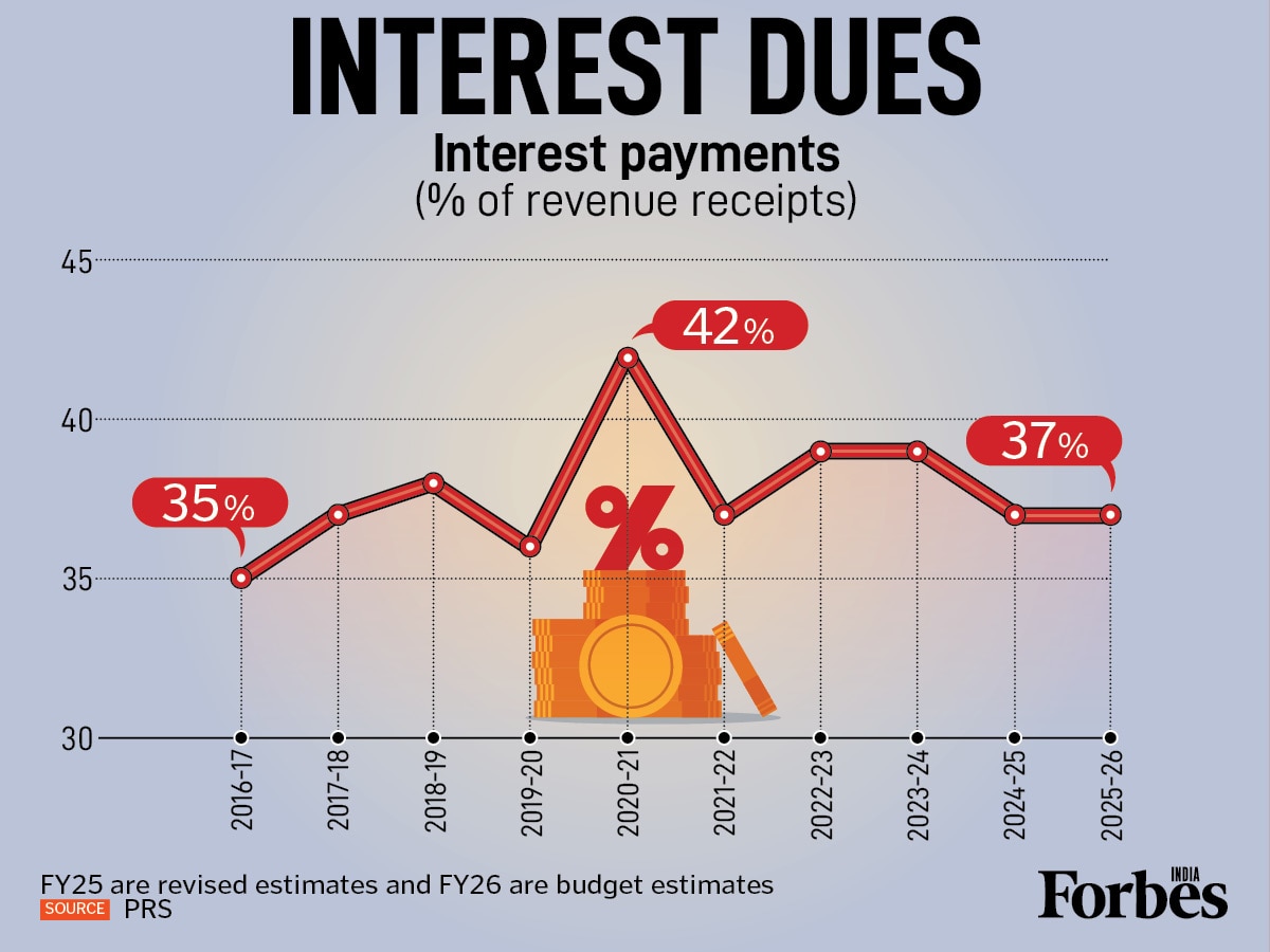 Fiscal pressure is mounting as debt obligations consume nearly 37 percent of revenue receipts, leaving a limited pool available for development spending.