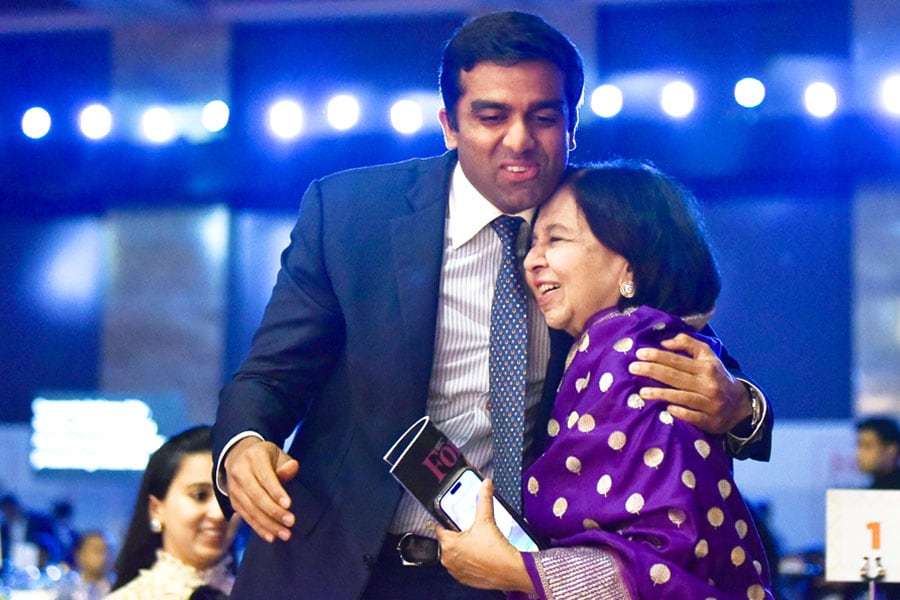 Parth Jindal, MD of JSW Cement and JSW Paints, gets a hug from his grandmother, Urmila Kanoria.