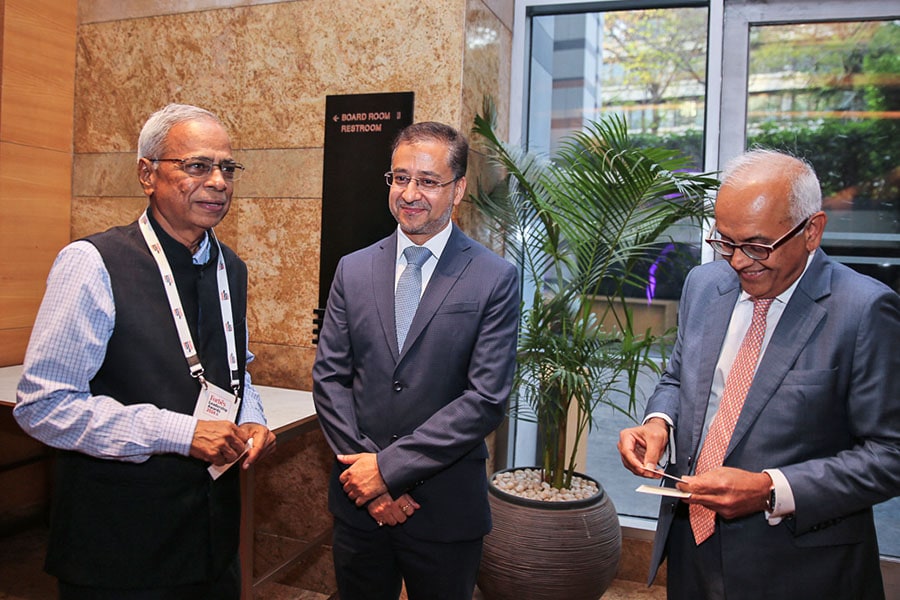 Prof. Ashok Jhunjhunwala, President, IIT-Madras Research Park (left), with Avinash Kaul, CEO, Network 18 and Mihir Doshi, India head, UBS and jury member, FILA Awards 2024.