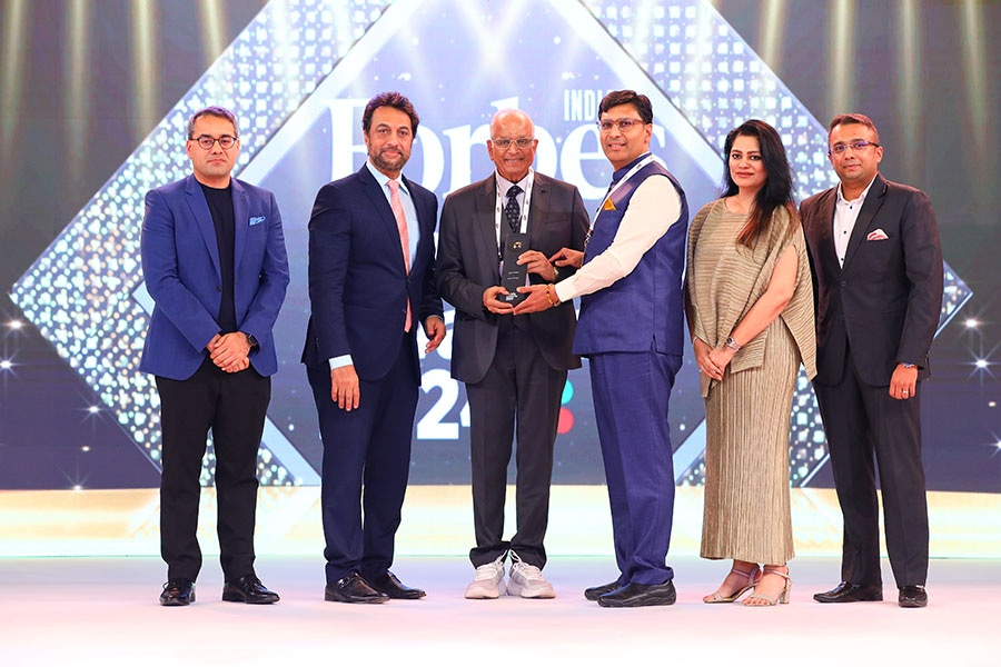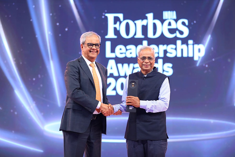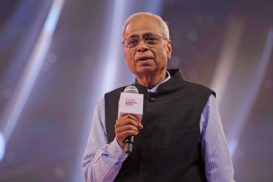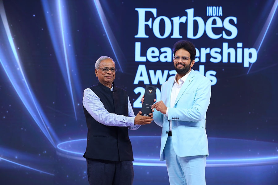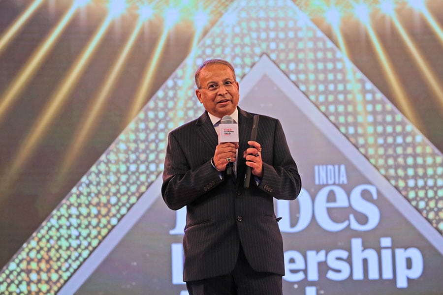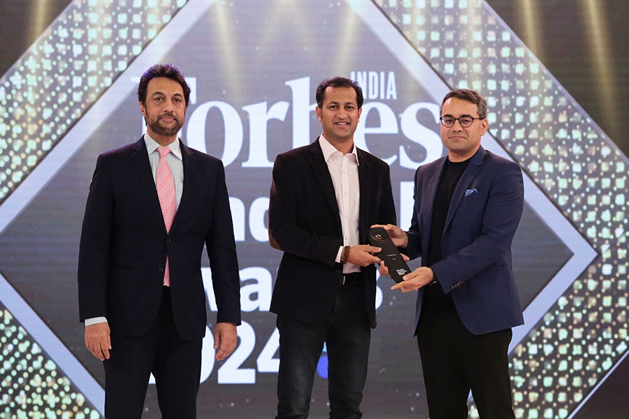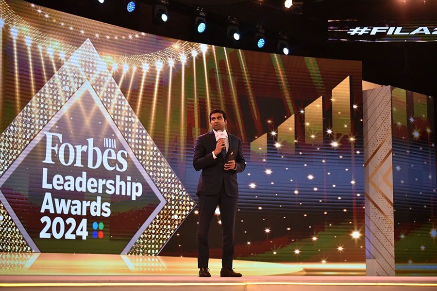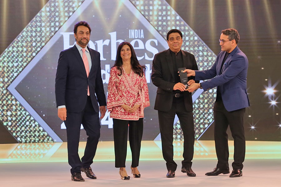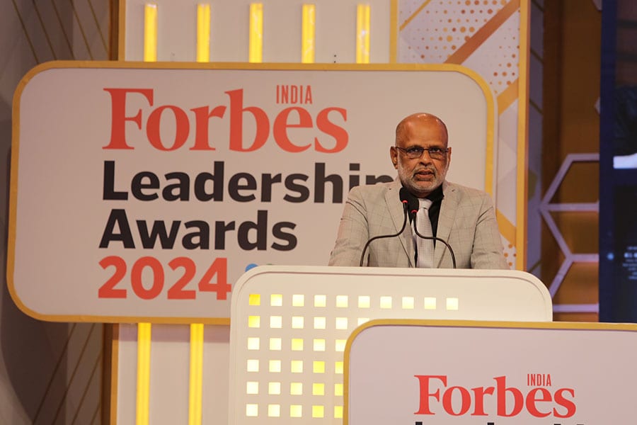 Sunil Vachani addresses the audience after receiving the Forbes India Leadership Awards 2024 for Entrepreneur of the Year. He expressed gratitude towards the 27,000-strong Dixon family for their contribution.