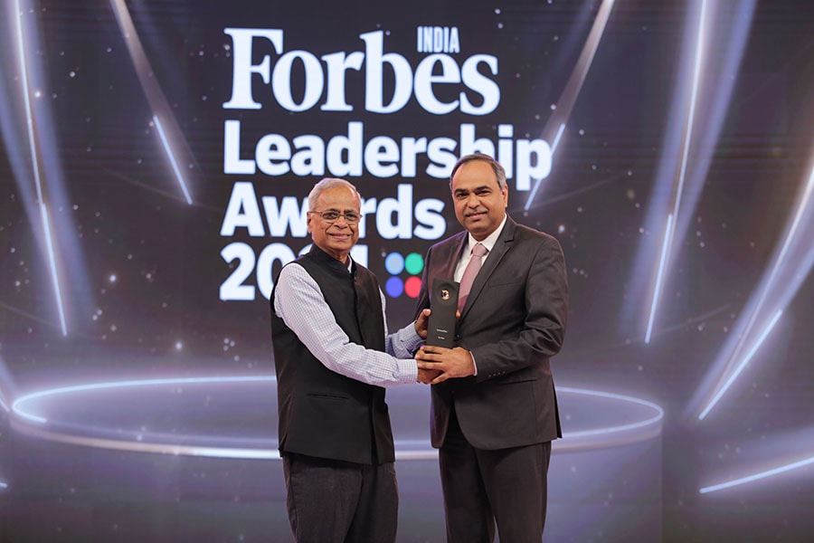 Shailesh Chandra, MD, Tata Motors Passenger Vehicles Ltd. and Tata Passenger Electric Mobility Ltd., is presented with the Turnaround Star award by Prof. Ashok Jhunjhunwala.