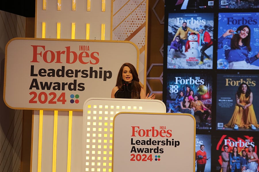 Compering the flow of events at the Forbes India Leadership Awards, Presenter Sonia Shenoy offers a vote of thanks.