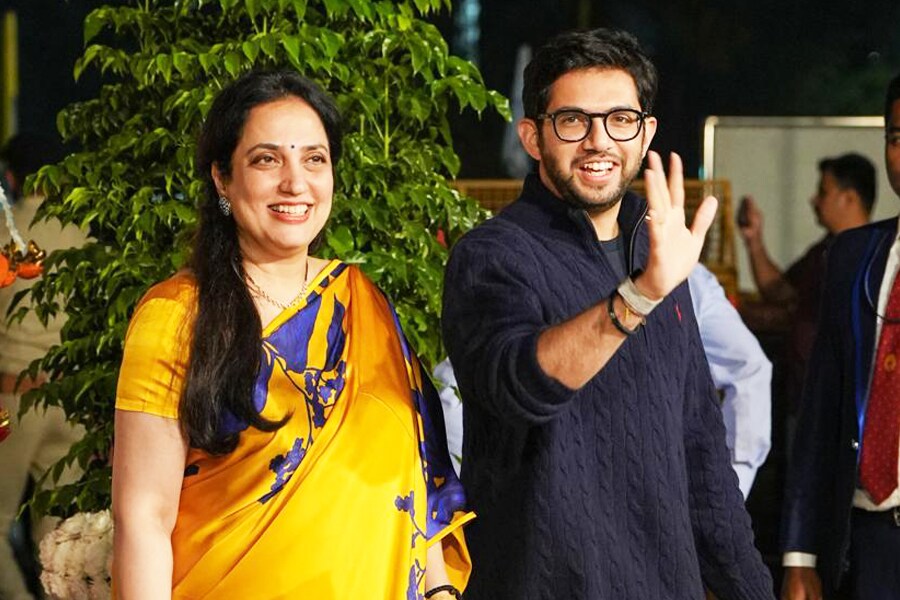 Rashmi Thackeray with son Aditya Thackeray who is the President of Yuva Sena (UBT).