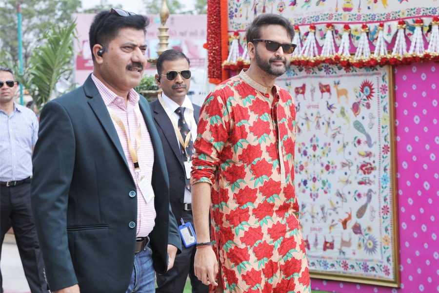Milind Deora, politician and Member of Parliament-elect, poses for the shutterbugs before heading off for the festivities.
