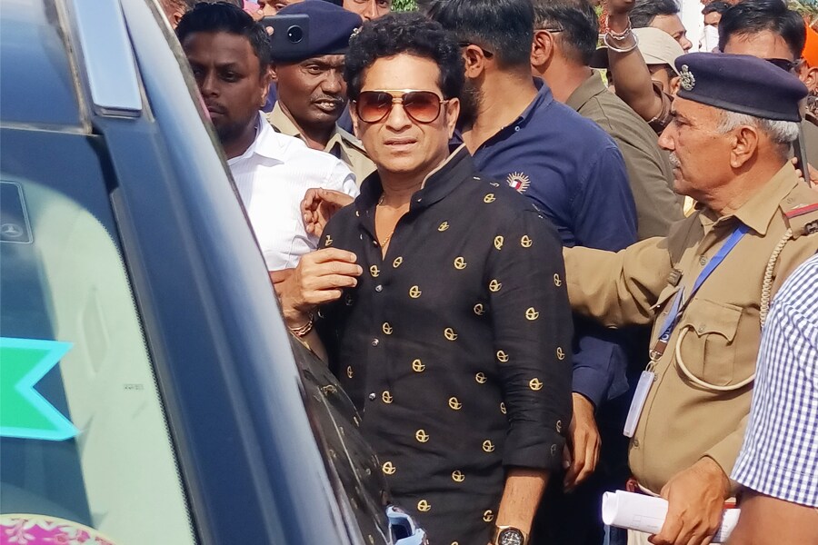 Master blaster Sachin Tendulkar arrives at Jamnagar airport.