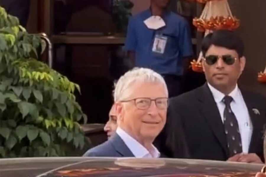 Bill Gates, co-chair of Bill & Melinda Gates Foundation, smiles for the cameras as he boards the car to reach the festivities destination.