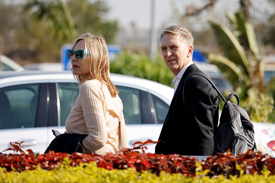 Bruce Flatt, CEO of Brookfield Asset Management, and his wife Lonti Ebers arrive to attend the pre-wedding celebrations of Anant Ambani, son of Mukesh Ambani, the Chairman of Reliance Industries, and Radhika Merchant, daughter of industrialist Viren Merchant, in Jamnagar, Gujarat, India on March 2, 2024.