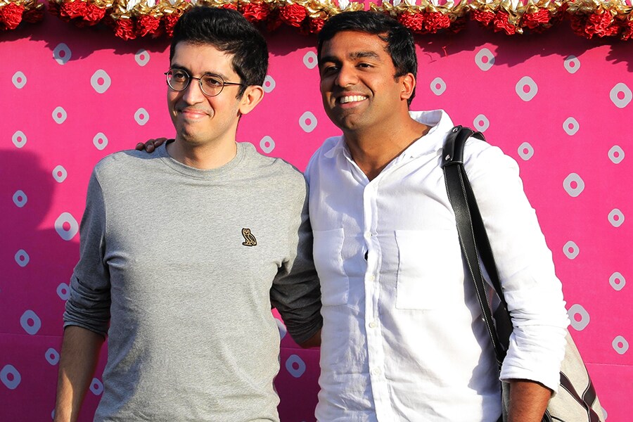 The next generation is here. Jay Kotak, co-head at Kotak811 and SVP - conglomerate relationships at Kotak Bank, poses with Parth Jindal, managing director, JSW Cement and JSW Paints, pose together at the Jamnagar airport as they arrive to participate in the pre-wedding festivities of Anant Ambani and Radhika Merchant.