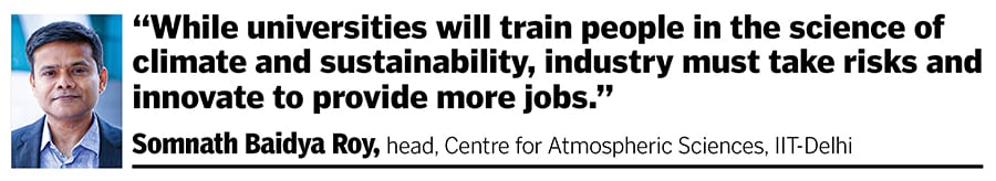 Somnath Baidya Roy, head of the Centre for Atmospheric Sciences at the Indian Institute of Technology (IIT)-Delhi, says when he pursued his master’s in environmental sciences in the 90s, it was an amorphous, abstract discipline. The situation is different today, he says, but we still aren’t there yet when it comes to academic training in climate and sustainability-related disciplines. “For example, in the US, there are more than 100 undergraduate degree programmes in atmospheric oceanic sciences, and demand for meteorology-related jobs is almost comparable to those available for engineers. India is not there yet," he says.