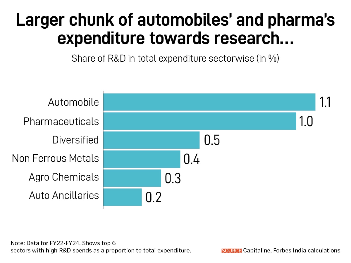 Even automobiles and pharma—the two sectors with the highest R&D expenditure—also spend only 1% on innovation