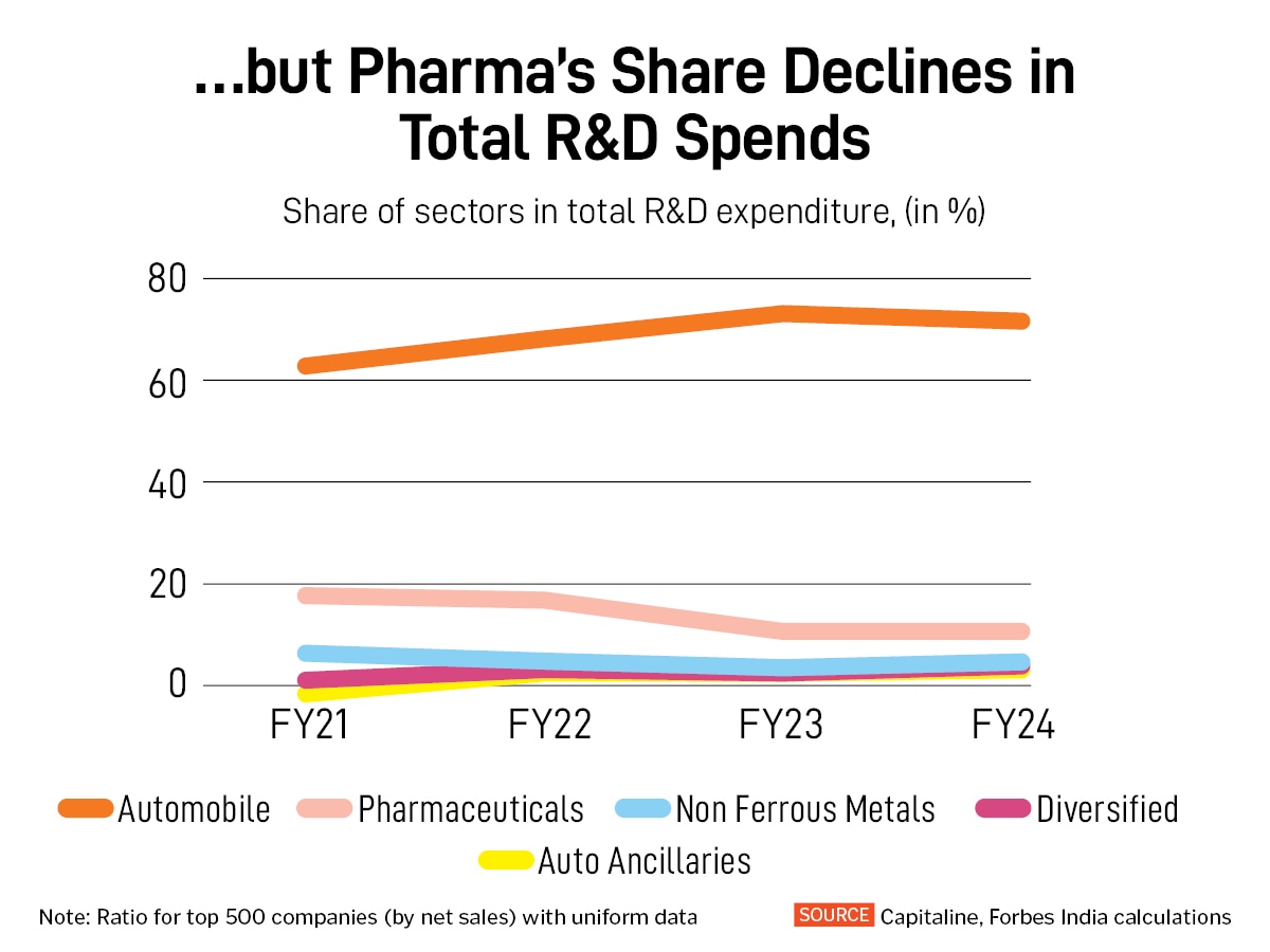 While the automobile and pharma sectors continue to have higher R&D spends, analysis shows that the share of pharma and IT in the total spends on research shrunk, and others like ecommerce and electro