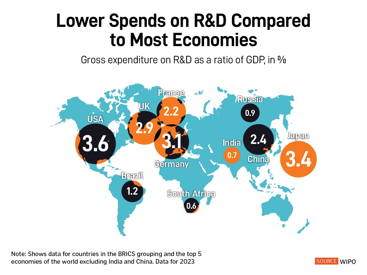 A slower growth rate and a higher dependence on the public sector in R&D spends has meant that India continues to lag behind most emerging and advanced economies in terms of research spending.
