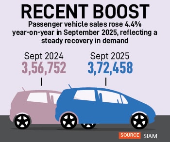 “Auto is a cyclical industry and after every 4-5 years the growth rate slows. Though this time, after the GST reduction we are anticipating a better H2 compared to H1,” says FADA’s Damani. He cautioned that an increase in vehicle prices in January, as is the norm, could hurt demand. “But if the current schemes continue to run and there is no increase, then this momentum can sustain into 2026 as well.”