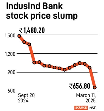 IndusInd Bank stock tanks 27 percent after derivatives markdown hurts creditabil