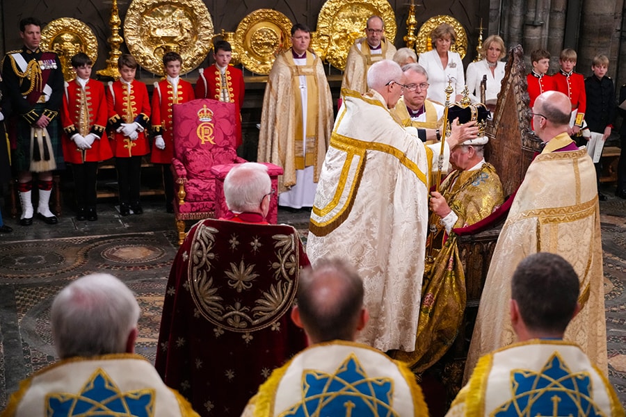 King Charles III is crowned with St Edward"s Crown by The Archbishop of Canterbury, the Most Reverend Justin Welby. Charles acceded to the throne in September 2022, upon the death of his mother, Elizabeth II.
