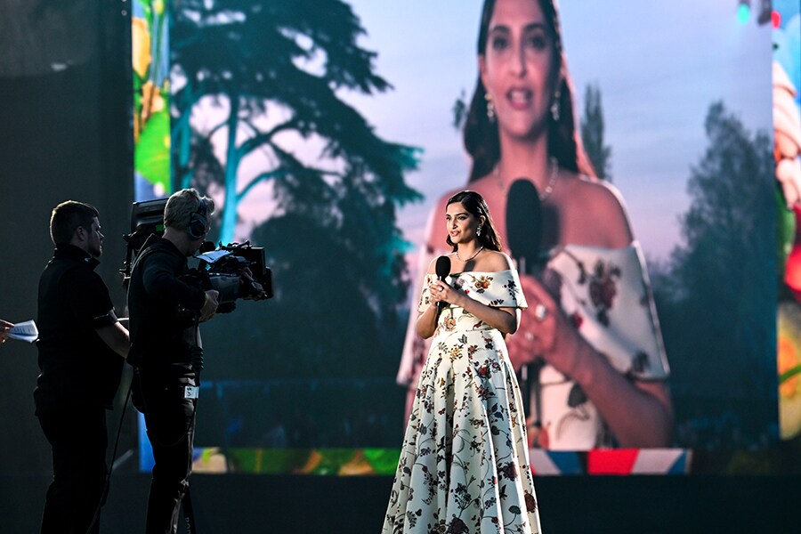 Sonam Kapoor on stage during the Coronation Concert on May 07, 2023, in Windsor, England. The Windsor Castle Concert is part of the celebrations of the Coronation of Charles III and his wife, Camilla, as King and Queen