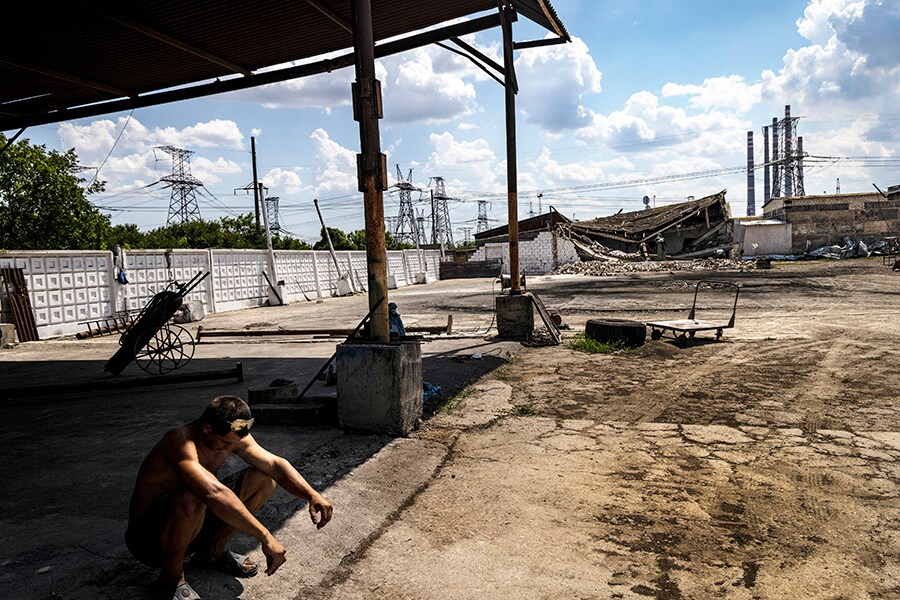 Serhiy Sokol’s wheat and barley farm, where buildings were destroyed by Russian rockets, near the town of Zelenodilsk, Ukraine on July 28, 2022. Sokol said he and his farmhands plucked dozens of aluminum tubes from Russian rockets from the black earth as they worked his fields. (David Guttenfelder/The New York Times)