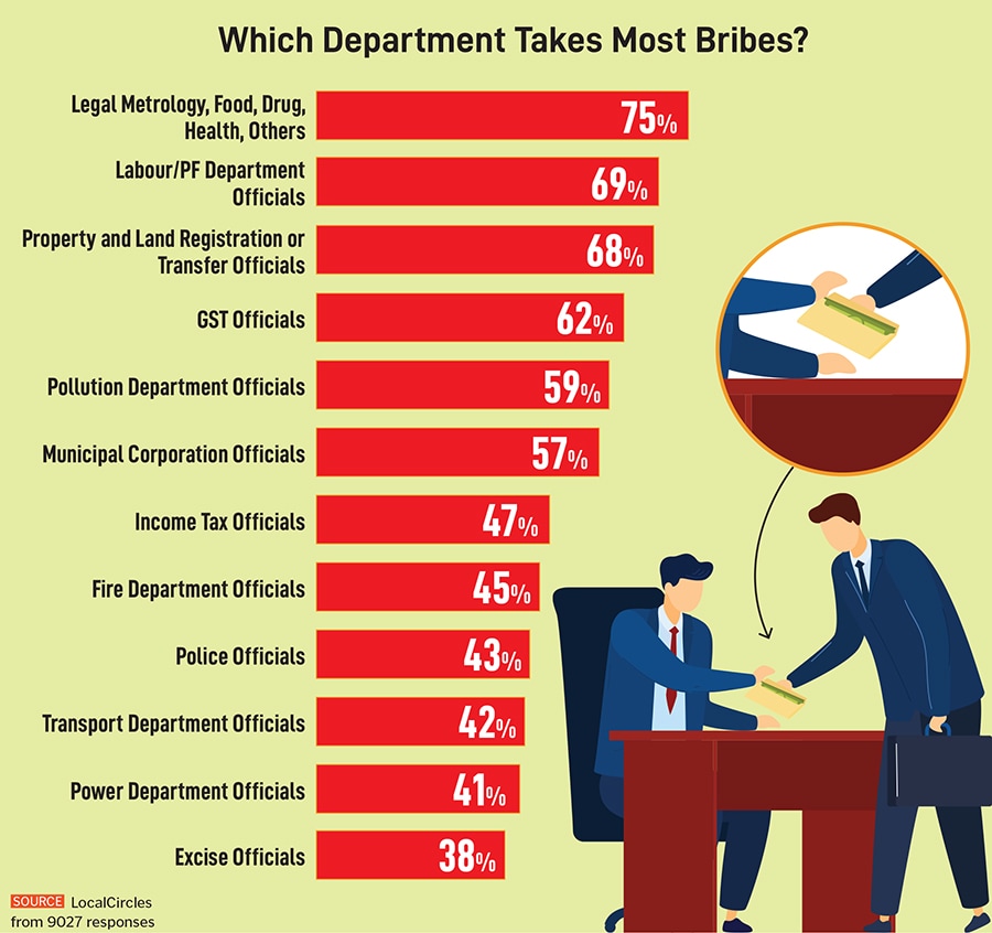 As per the Indian Business Corruption Survey 2024 by LocalCircles, corruption was rampant in the country in the past year, with 72 percent bribes having been paid to government officials