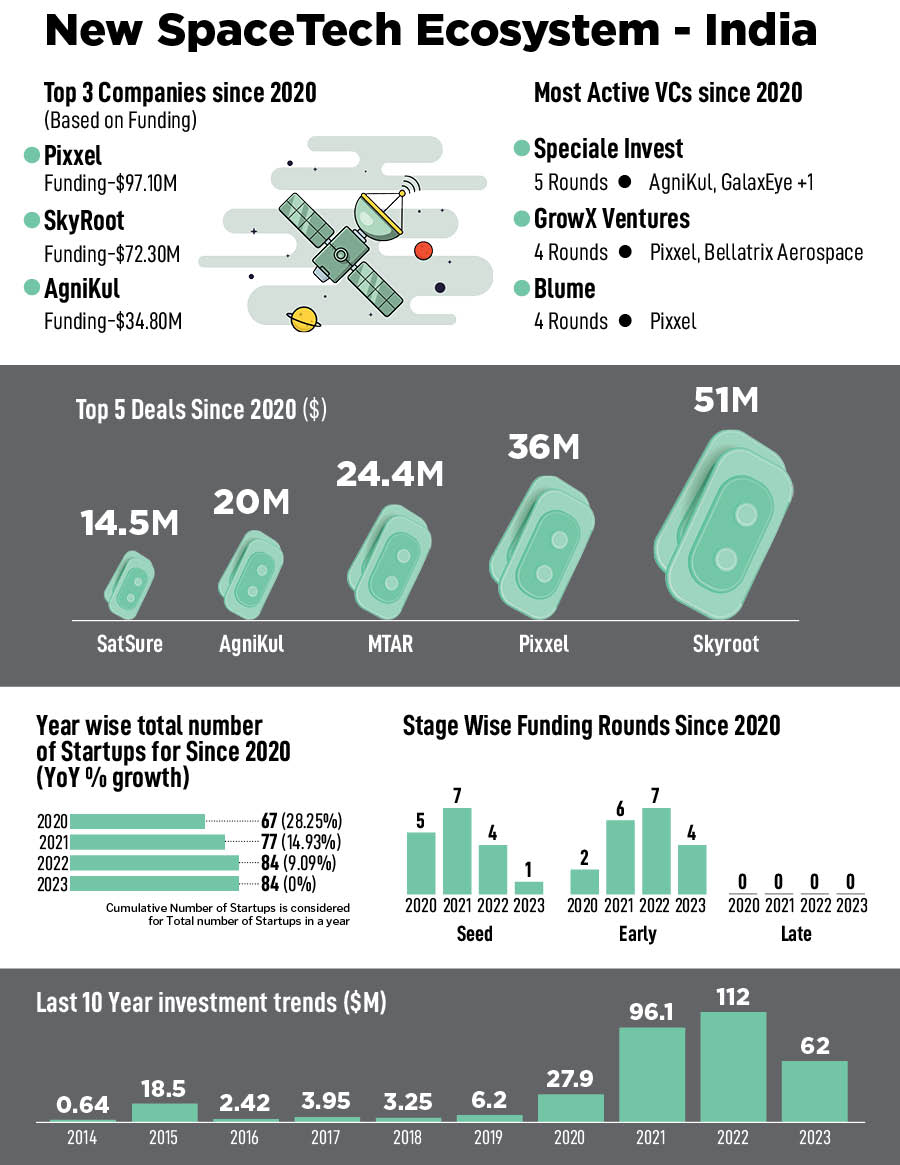 On the startups front, Indian space tech startups have gone from raising only $35 million in funding between 2010 and 2019, to $28 million in 2020 to $96 million in 2021 and $112 million in 2022, according to Tracxn, a private markets intelligence provider.