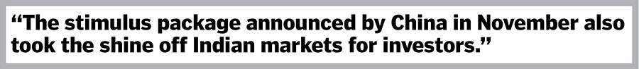 The Sensex made a record high at 85,978.25, while the Nifty, too, hit a lifetime-high of 26,277.35 in September. Both the benchmark indices surged over 20 percent by the first nine months of 2024 as election-related euphoria pumped investors to keep allocating more money into stocks. However, weaker-than-anticipated corporate earnings in the September quarter and heavy sell-off by FIIs in October led to massive corrections in Indian equity. Eventually, Sensex and Nifty have declined nearly 10 percent from their respective life highs. The stimulus package announced by China in November also took the shine off the Indian markets as investors started reconsidering China as an alternative to India in their investment portfolio.