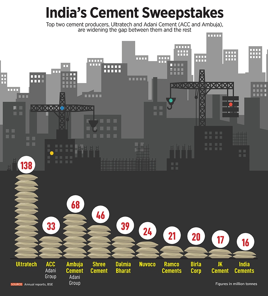 Adani and Ultratech both have substantial cash reserves that could be deployed for acquisitions in the years ahead. Ultratech has a net worth of Rs54,000 crore and a debt of Rs11,000 crore. At Ambuja, the net worth stands at Rs26,000 crore with negligible debt. Expect some of this cash to be deployed for acquisitions and the industry to consolidate around four to five large players. Ultratech, Adani, Shree and Dalmia Bharat have a shot at emerging as large players.
