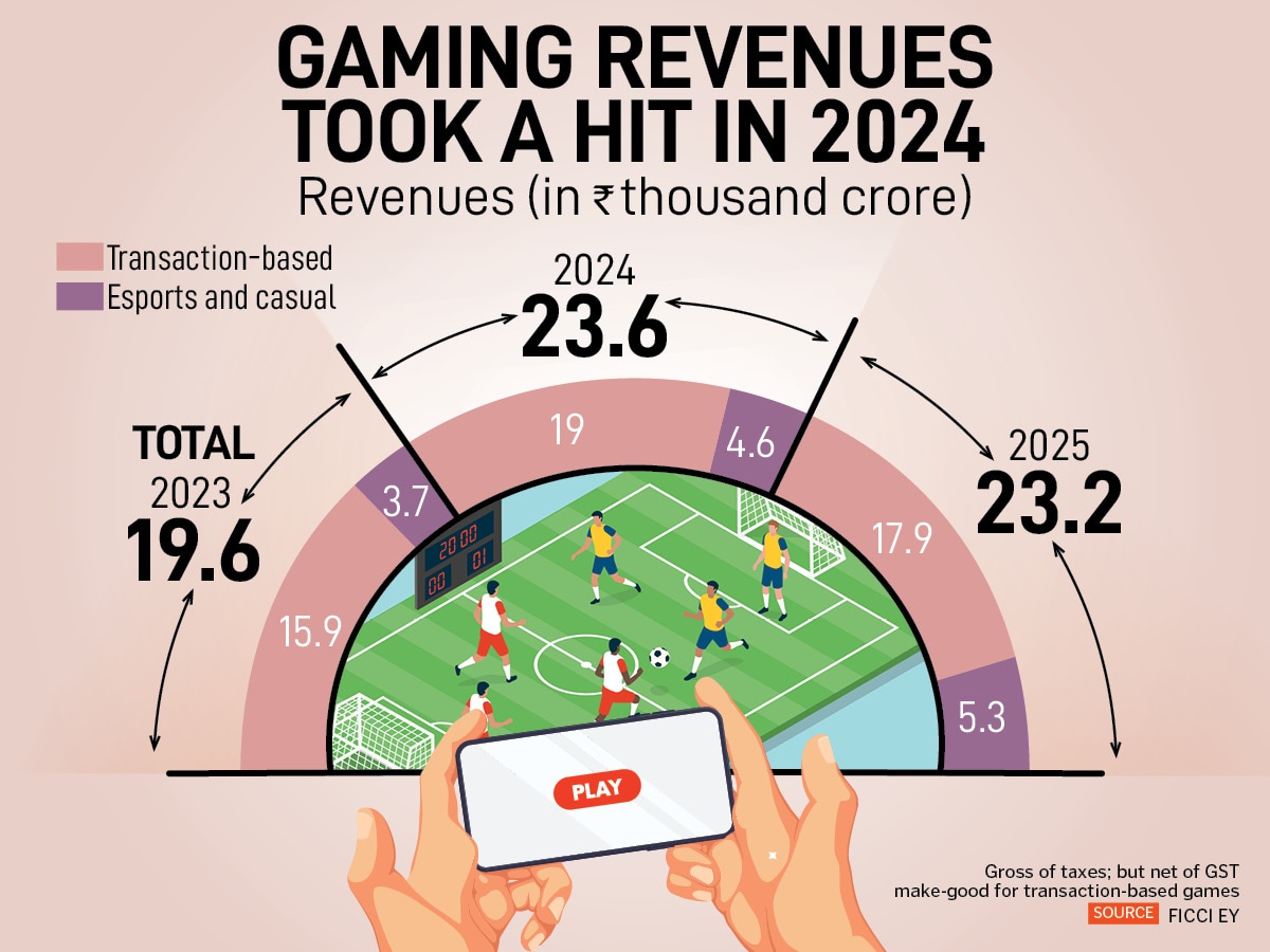 Even before the government passed the draft Promotion and Regulation of Online Gaming Bill to ban real money games in the country, high GST rates had already slowed down online gaming revenues. Gaming startups were also seeing a decline in their funding after the pandemic bump.Real money gaming revenues, which make up almost 80 percent of the online gaming space, jumped 19.5 percent from Rs16,000 crore in 2022 to Rs19,000 crore in 2023. The following year, higher GST rates and TDS on earning played spoilsport as a 28 percent GST on online gaming came into effect in October 2023.Subsequently, revenues dipped by 6 percent to Rs17,900 crore, according to data from a FICCI-EY report on media and entertainment titled “Shape the Future". The report points out that revenues slowed down “due to the impact of the GST make-good that transaction-based gaming companies absorbed into their margins".Consequently, online gaming, as a whole, saw a slowdown in earnings. Though the sector’s revenues increased by 20 percent to about Rs24,000 crore in 2023, they remained almost flat in 2024.But esports has seen a marginal increase in revenue from Rs 4000 crore in 2022 to over Rs 5000 crore in 2024.