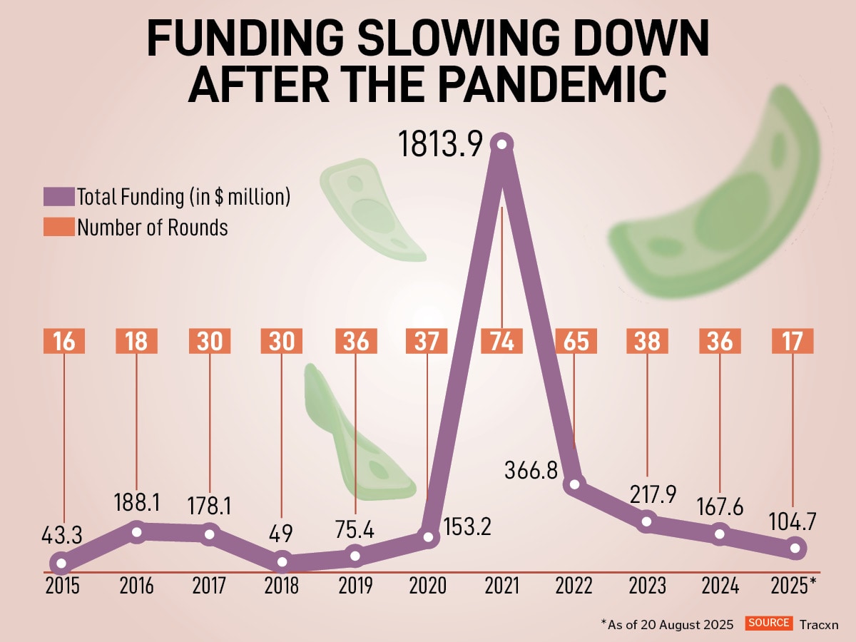 Gaming startups saw an opportunity to grow as well during this period. About 800 online gaming startups were founded until 2018, while another 204 came up in 2019. Since 2020, however, over 1,000 startups have been launched in this sector.But the sector has struggled with fundraising since 2021, the year it raised over $1 billion. For instance, while online gaming startups raised over $217 million in 2023, they struggled to even cross the $200-million-mark in 2024. So far, in 2025, they have raised about $105 million.