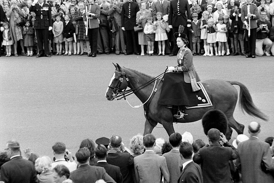 Queen Elizabeth takes part in the annual Trooping the Color ceremony in London on June 13, 1964. Queen Elizabeth, who inherited the throne at age 25 in 1952 and became Britain’s longest-serving monarch, died on Sept. 8, 2022. She was 96. (Carl T. Gossett Jr./The New York Times)