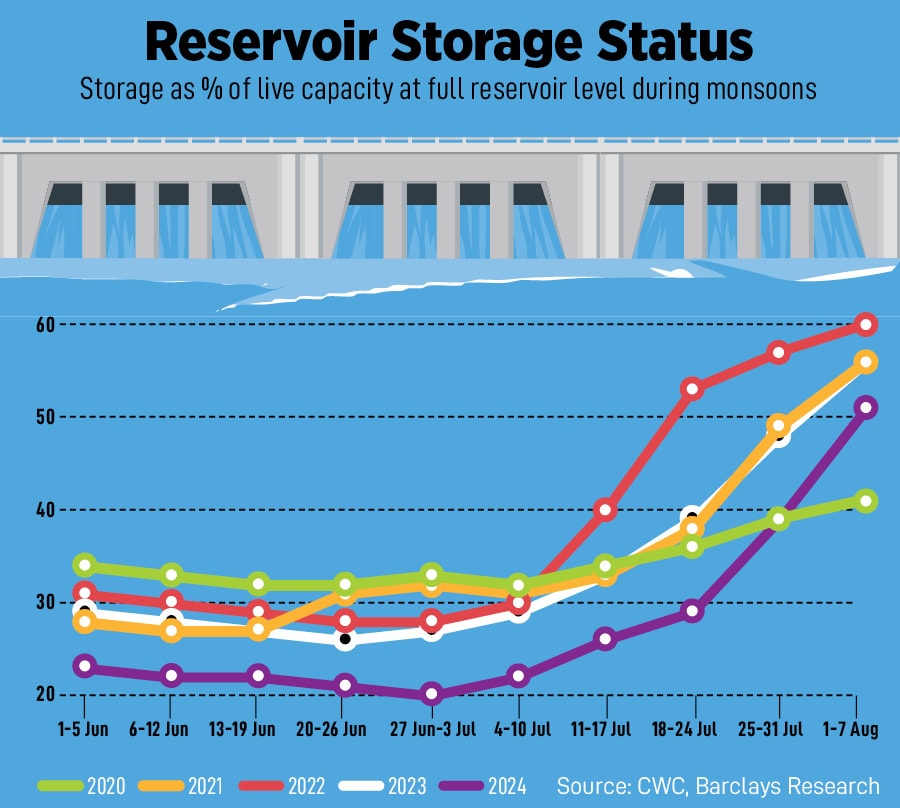 The first half of monsoon season saw scanty rainfall in few regions of the country and an excess in the rest, leading to a flood situation devastating lives and property. However, sowing of kharif crops has been impressive so far, while water storage in reservoirs has also increased.