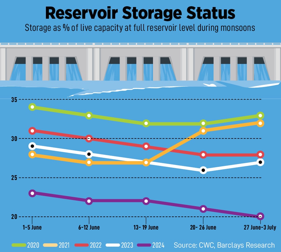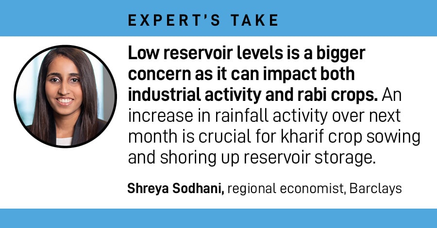 Trends in reservoir aren’t encouraging. Overall, basin-wise reservoir levels are in deficit, and below last year’s level.