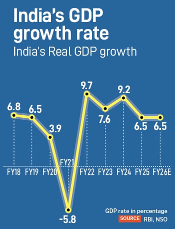 Madan Sabnavis, chief economist at Bank of Baroda, said there is a limit to which interest rates can impact growth. “We foresee a 10-15 percent fall in exports and we do not expect the tariff to impact growth in a substantial way," he told Forbes India. He has projected India’s GDP growth at 6.4 percent for FY26.