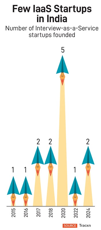 Once the interview is complete, a detailed feedback report is delivered to the client in two hours, allowing the next round of interviews to begin almost immediately—a standardised operational framework across the entire IaaS ecosystem. And this way, the entire hiring process, which would typically take months, is wrapped up in three to six weeks. Apart from India, these startups serve clients across geographies in America, Europe, the Middle East and South Asia.