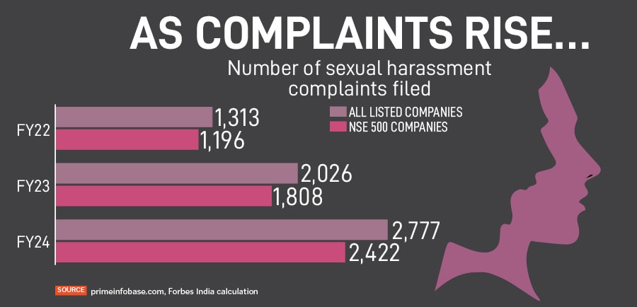While more employees are stepping forward to report sexual harassment, resolutions of these complaints are not keeping pace, leading to a significant increase in unresolved cases, according to a Forbes India analysis of data from primeinfobase.