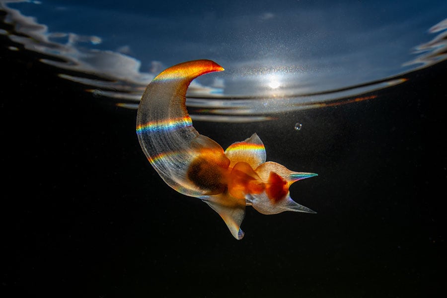Sea Angels are small sea slugs whose transparent bodies and graceful flapping wings make them look more celestial than slug-like.